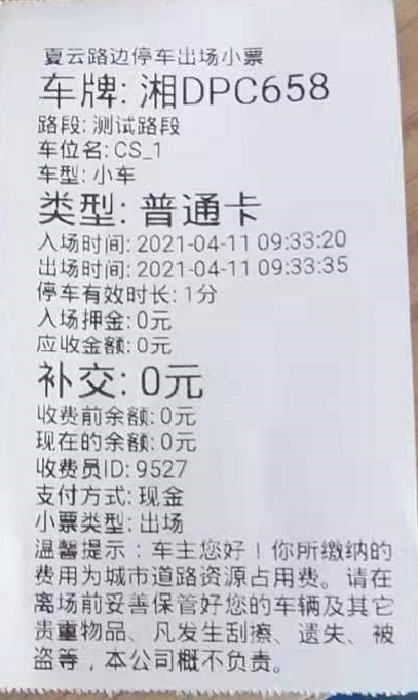 點選車位或拍照識別→確認收費結果→打印出場收費小票。